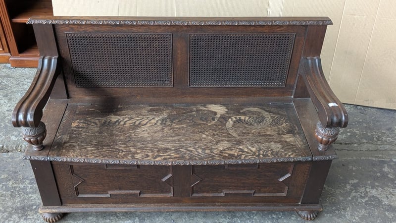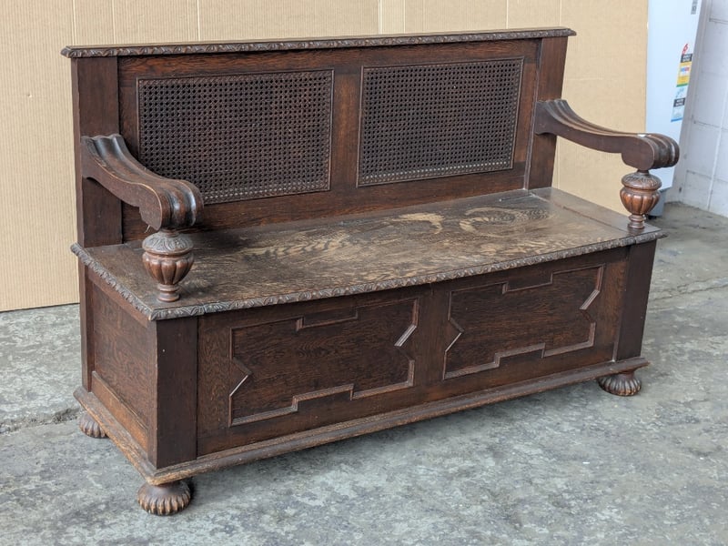 Bench, antique style timber monks bench. Furniture 88cm H x 148cm W x 47cm D