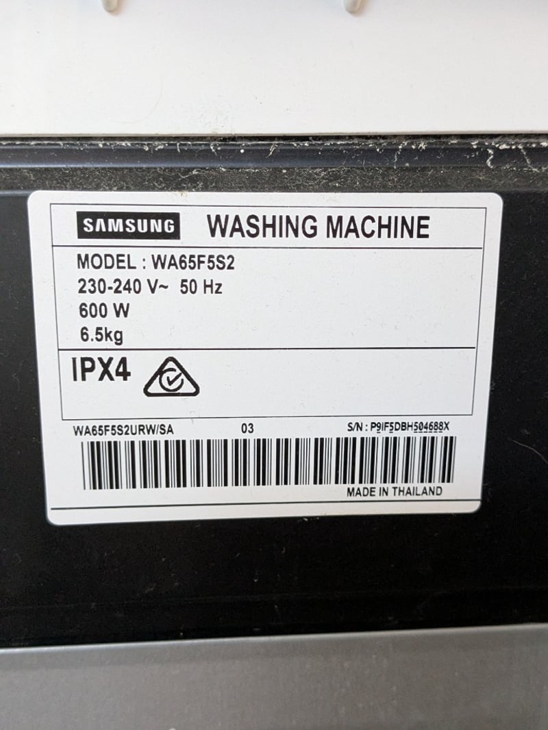 Washing machine, Samsung 6.5kg top load model no. WA65F5S2