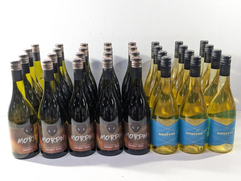 Alcohol, 32 x 750ml total bottles includes Morph Sauvignon Blanc and Rosetta Sauvignon Blanc Sold as lot