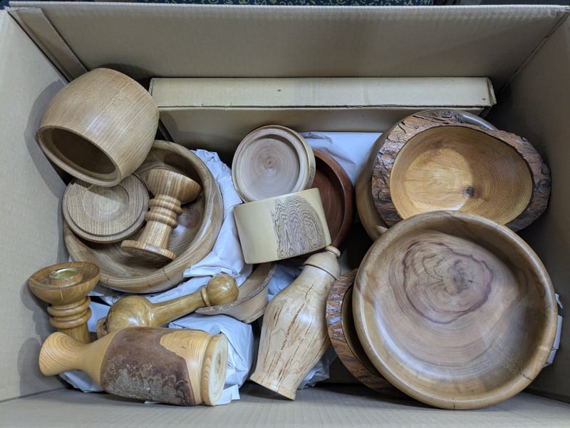 Homewares, including timber bowls, candle holders and more Sold as lot