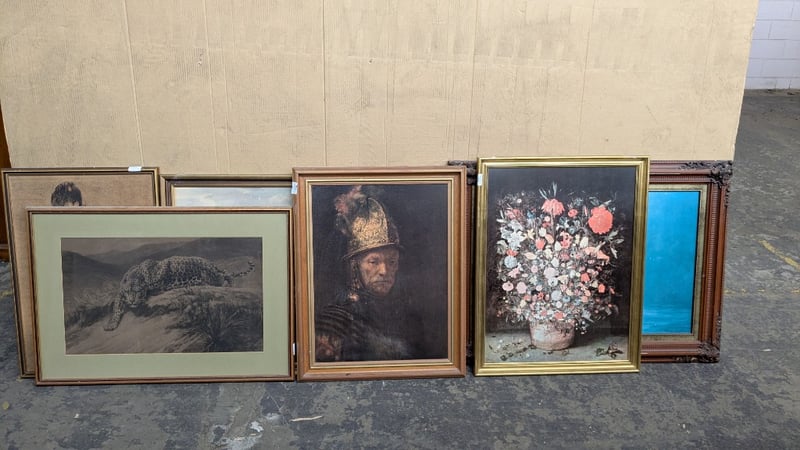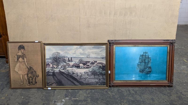 Artwork, 11 pieces includes framed vintage style prints
