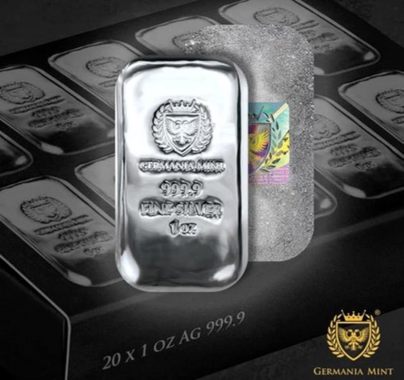 1OZ SILVER 999.9 GERMANIA MINT CAST BAR