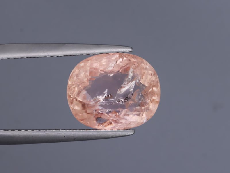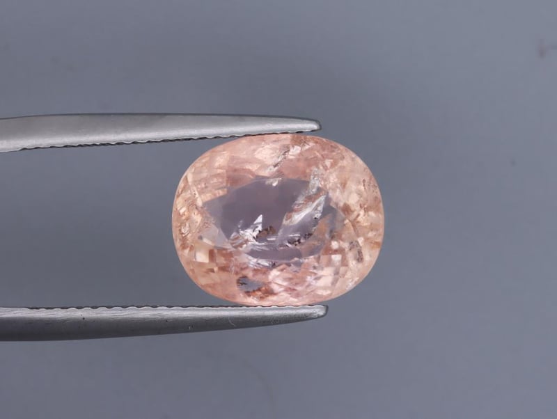 Comments: This Oval-Cut Paraiba Tourmaline Displays A Soft Pastel Peach Color With Eye-Visible Inclusions. The Natural Copper Content Contributes To Its Characteristic Glow And Pastel Hue.