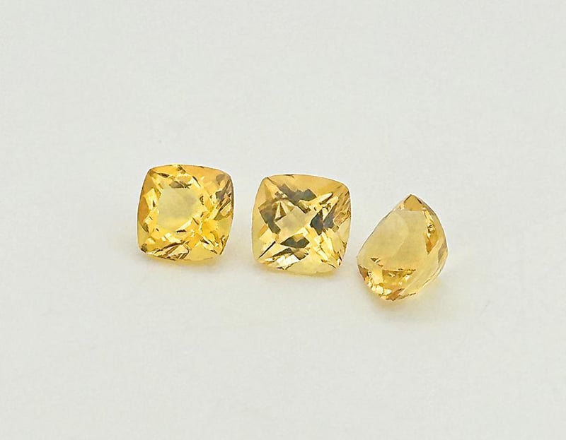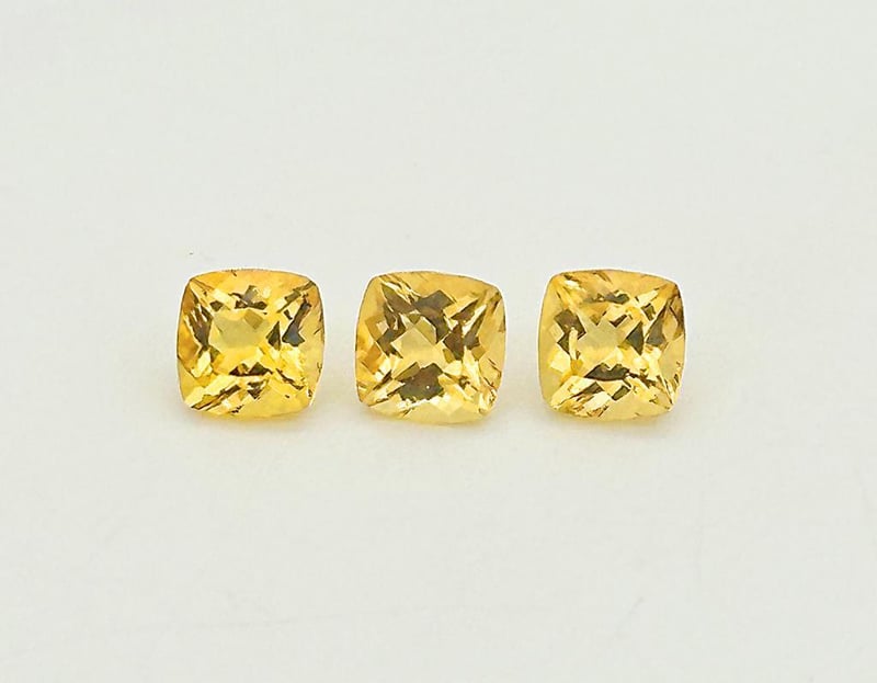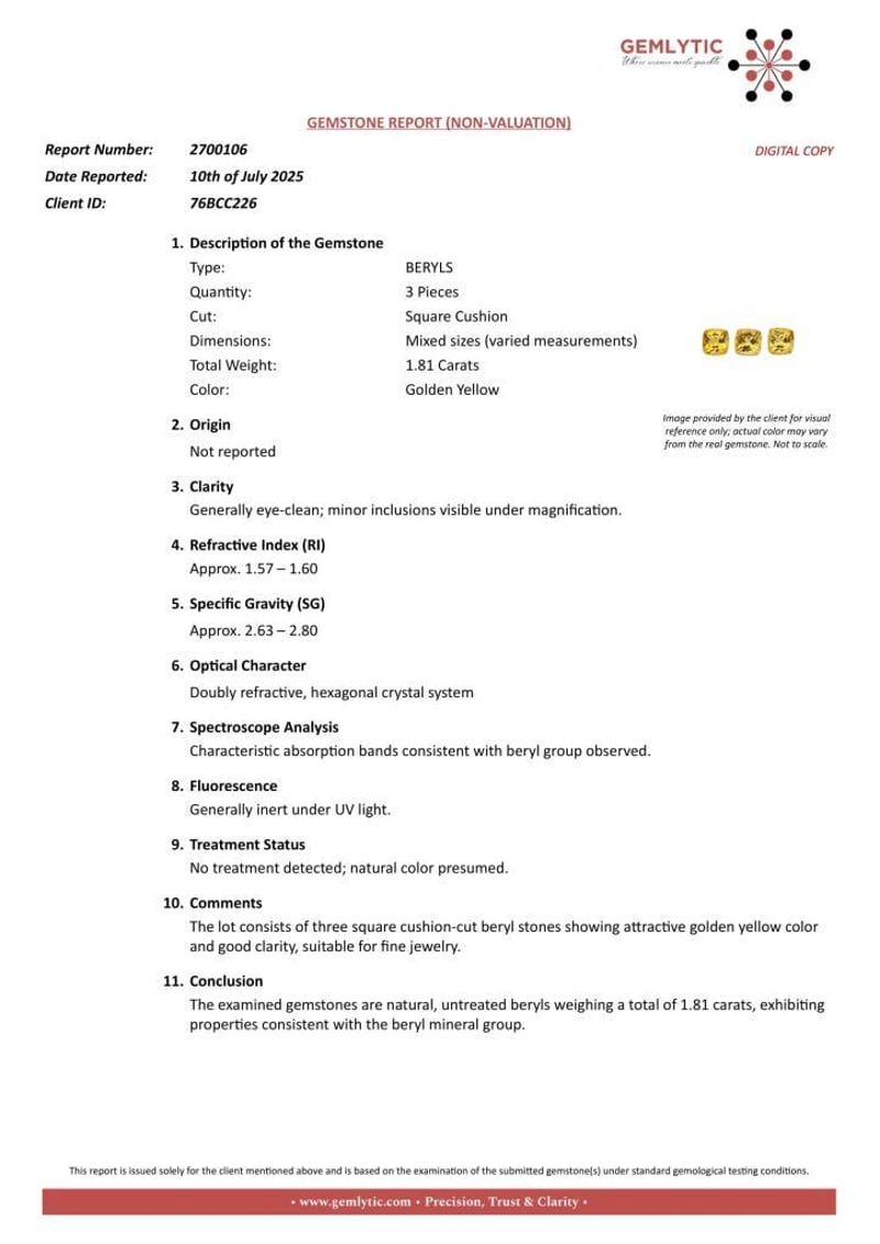 Comments: The Lot Consists Of Three Square Cushion-Cut Beryl Stones Showing Attractive Golden Yellow Color And Good Clarity, Suitable For Fine Jewelry.