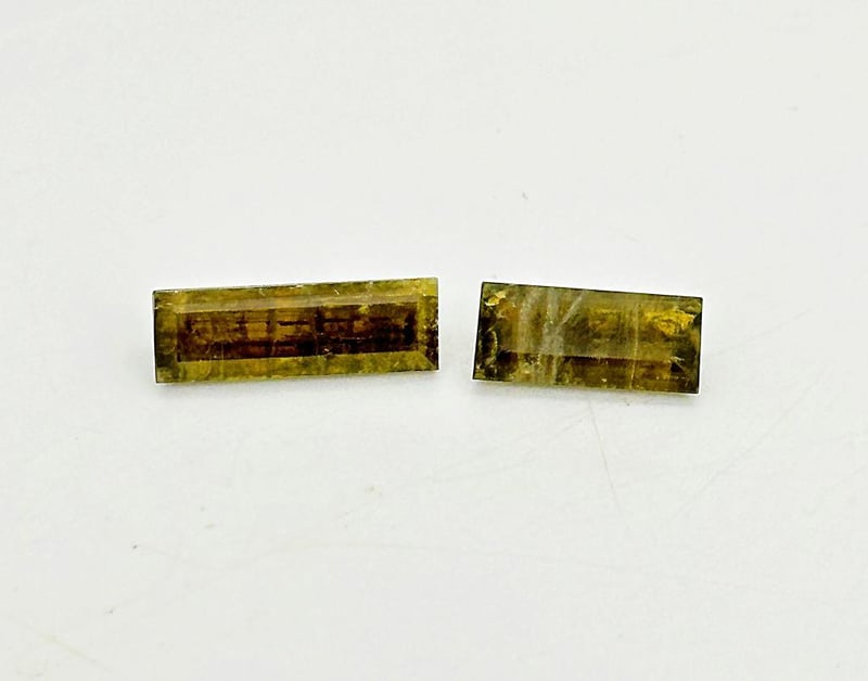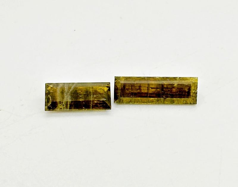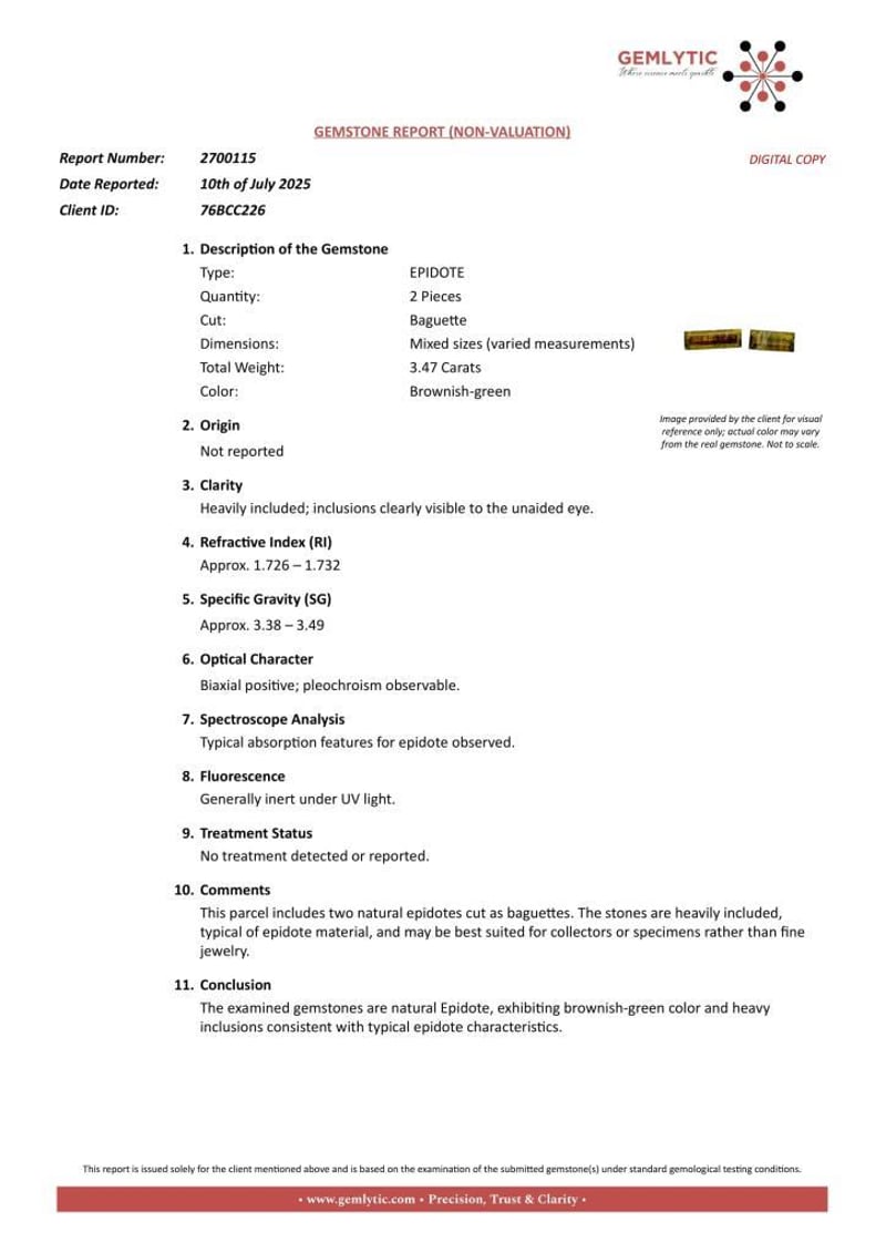 Comments: This Parcel Includes Two Natural Epidotes Cut As Baguettes. The Stones Are Heavily Included, Typical Of Epidote Material, And May Be Best Suited For Collectors Or Specimens Rather Than Fine Jewelry.
