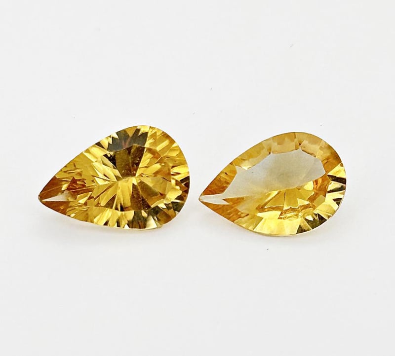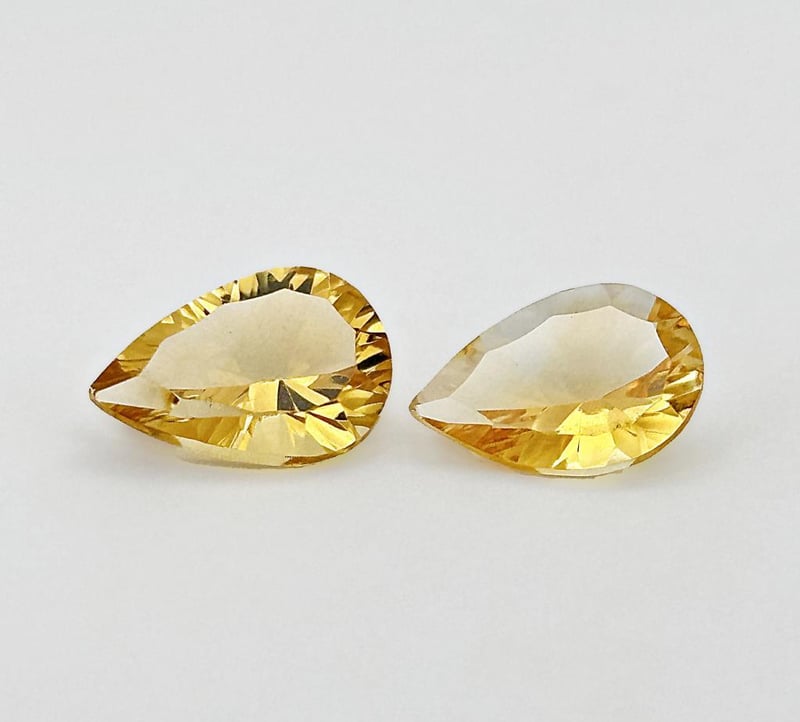 Comments: This Parcel Includes Two Natural Citrines Cut In An Elegant Pear Shape With A Concave Faceted Design. They Exhibit A Vibrant Golden Yellow Color And Excellent Clarity.