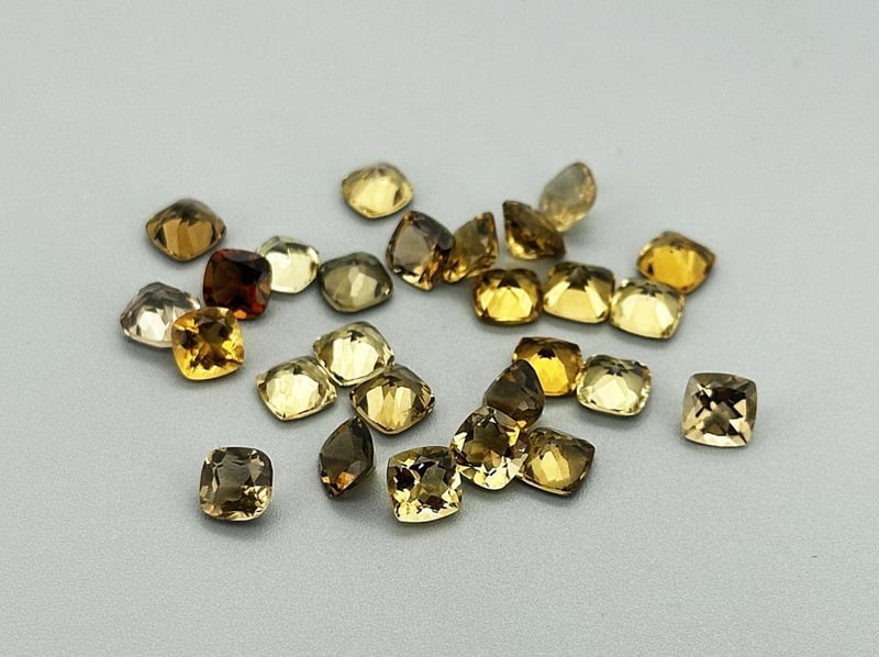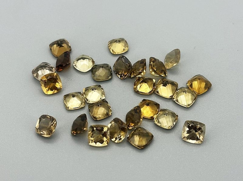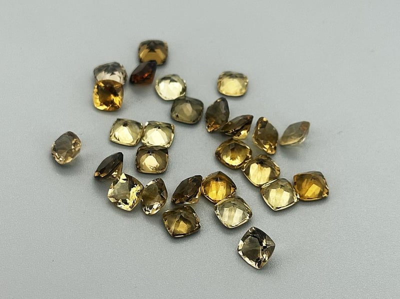 Comments: This Parcel Of Cushion-Cut Quartz Exhibits A Range Of Brown, Green, And Yellow Colors. All Stones Are Clean And Transparent, Suitable For Jewelry Use.