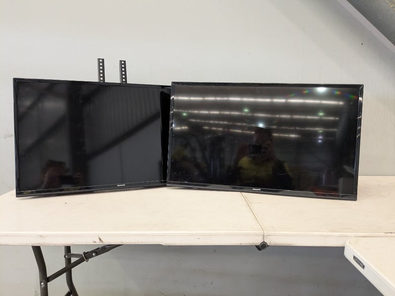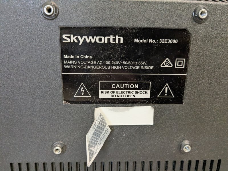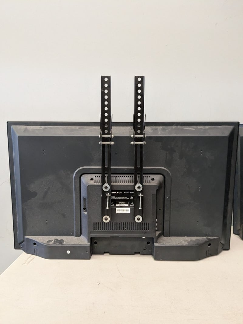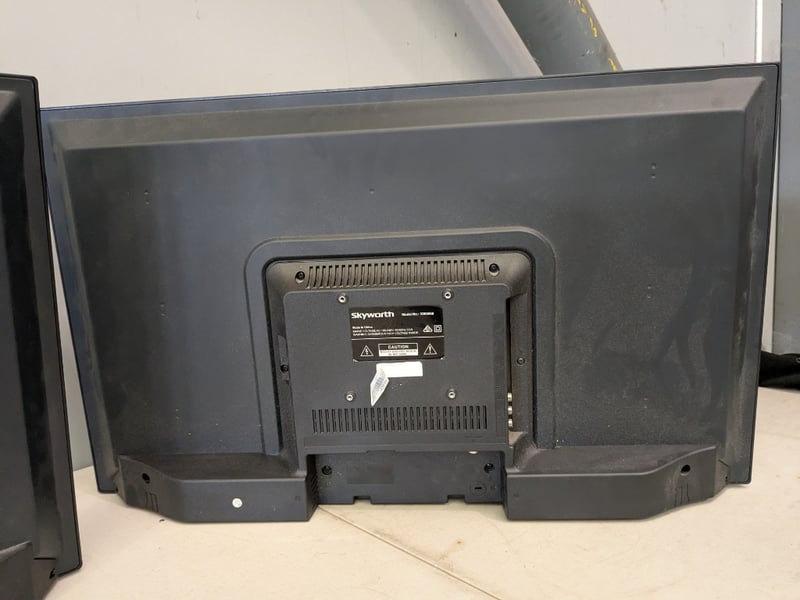 2 x Skyworth Monitors/Small TVs (1 With Wall Bracket). Note: Untested Power Cords and Remote Included