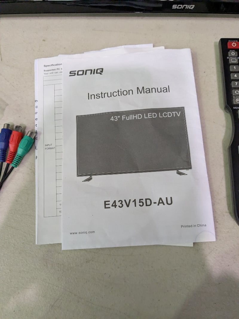 SONIQ 43" FullHD LED LCD TV with wall bracket, remote and cords.Model: E43V15D-AUNote: Untested.