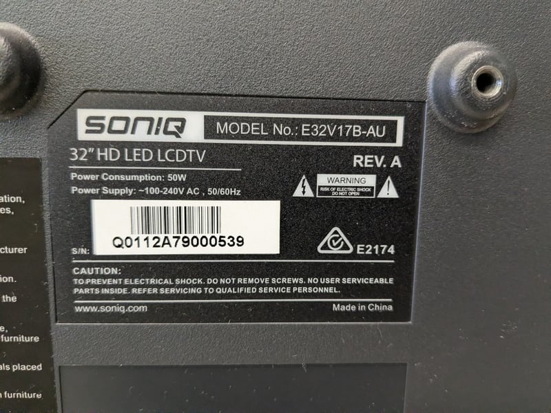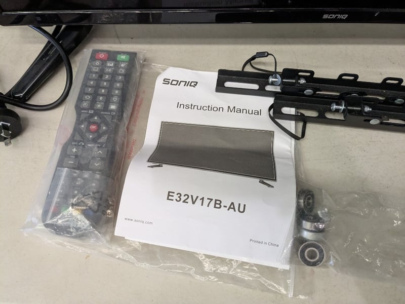SONIQ 32" FullHD LED LCD TV with wall bracket, remote and cords. Model: E32V17B-AU Note: Untested.