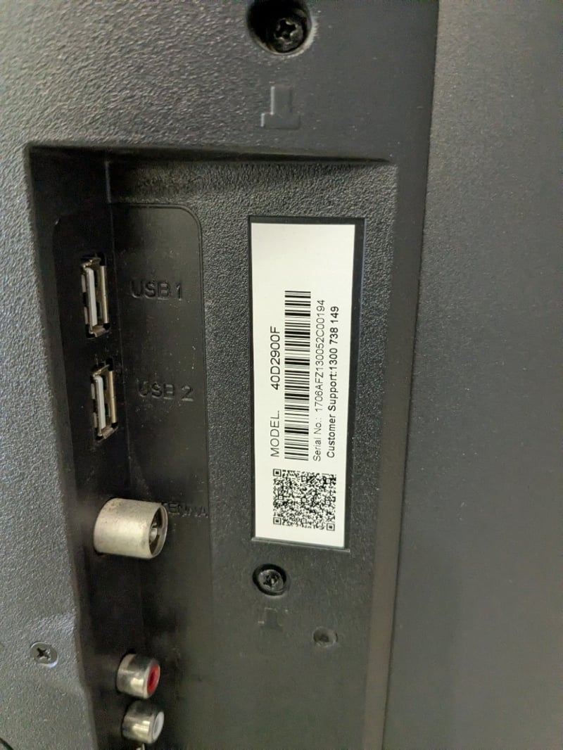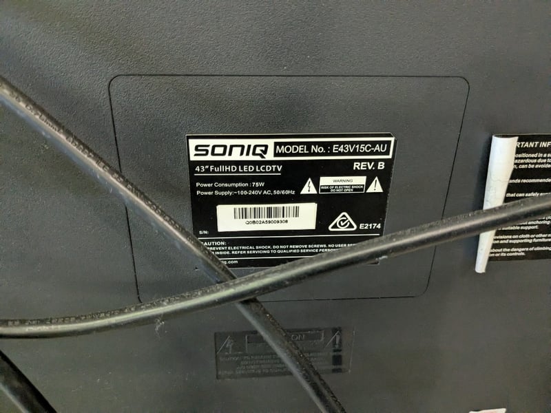 2 x LED TVs with Power Cords and Wall Brackets. SONIQ 43" FullHD LED LCD TV, Model: E43V15C-AU TCL 40" LED TV, Model: 40D2900F Note: both TVS are Untested. Power Cord and Remote Included