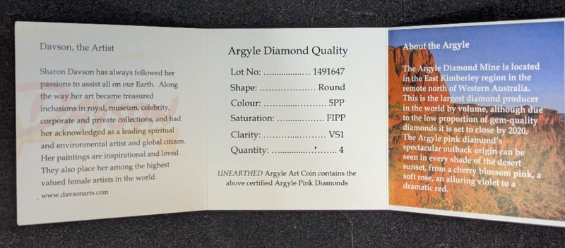 LIMITED EDITION SHARON DAVSON 1 OZ ROSE GOLD AND SILVER ARGYLE ART COIN