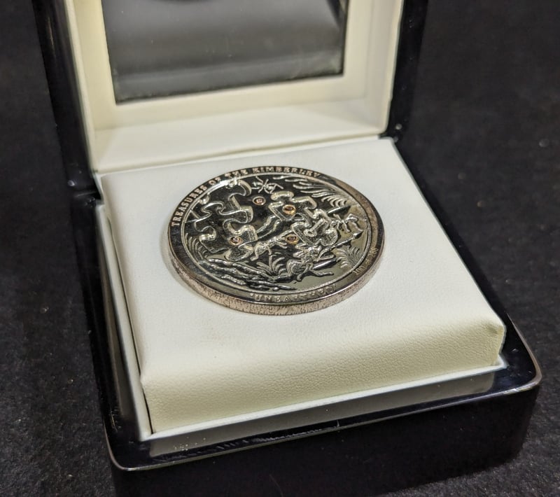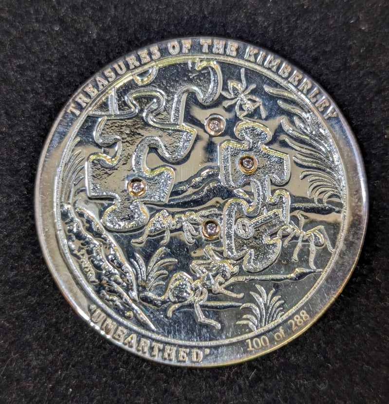 Coin Engraved "Treasures Of The Kimberley", "Unearthed", 100 Of 288, 750 Rose Gold And .999 Silver