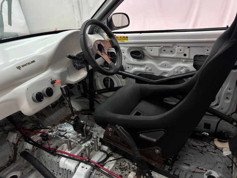 Cobra Monaco Pro Racing Seat, Whiteline AGI Rollcage, Autotechnica Steering Wheel, Tow Straps for front and rear, Gutted Interior and Door Cards, Relocated Battery, Hood Clips, Whiteline Stripped Dash, AeroFlow PSI Flow Sensor, Fire Extinguisher Interior: