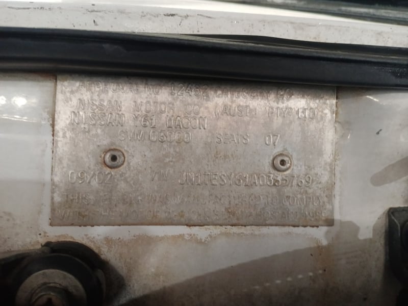 2002 Nissan Patrol Year: 2002 Make: Nissan Model: Patrol Odometer: Indicating 225,485 Kilometers Colour: White Description/extras: Idle requires attention Miscellaneous 4x4 accessories VIN: JN1TESY61A0335769 ENG No: ZD30166837A AS PER PPSR (Key #AA1) Lloyds stock #990870+1 #PCV