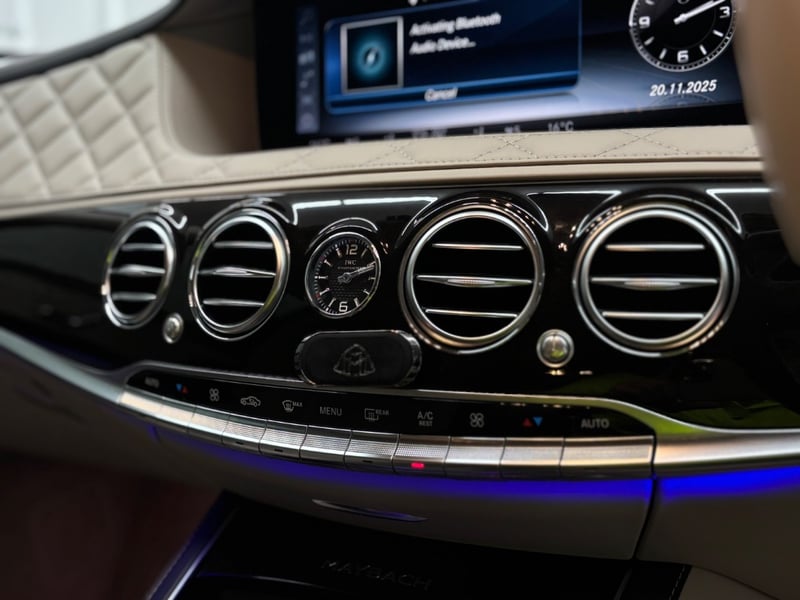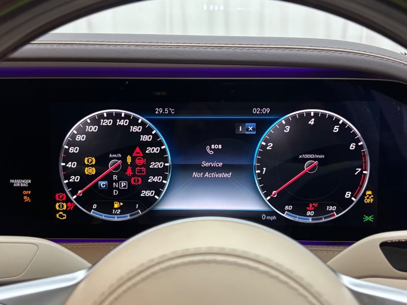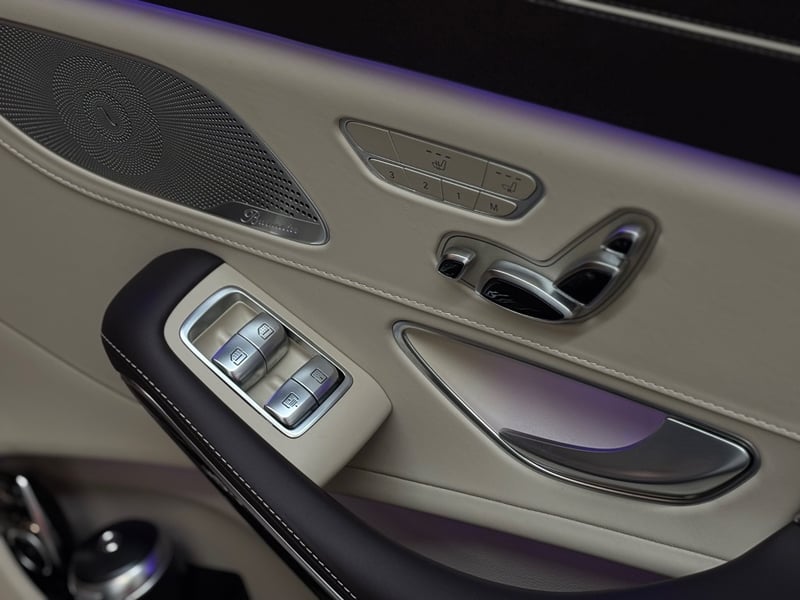 Lane Assist, Burmester Surround System, Memory seats, Dynamic Suspension Adjustment, Parking Sensors, IWC Schaffhausen Analog Dash Clock, Sunglasses Compartment, Cup Holders, Multifunctional Steering Wheel, Mercedes Ash Holders, Rear Passenger Multimedia System,