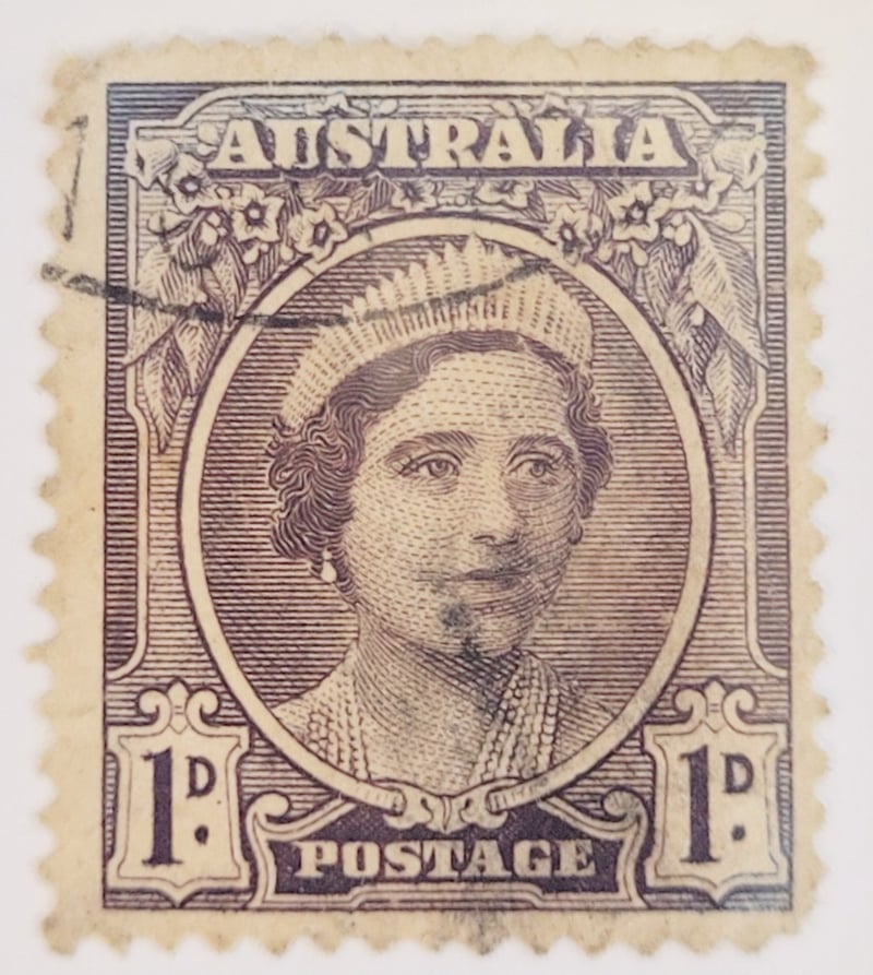 1943 AUSTRALIA ID BROWN " COLOUR ERROR" QUEEN MOTHER STAMP
