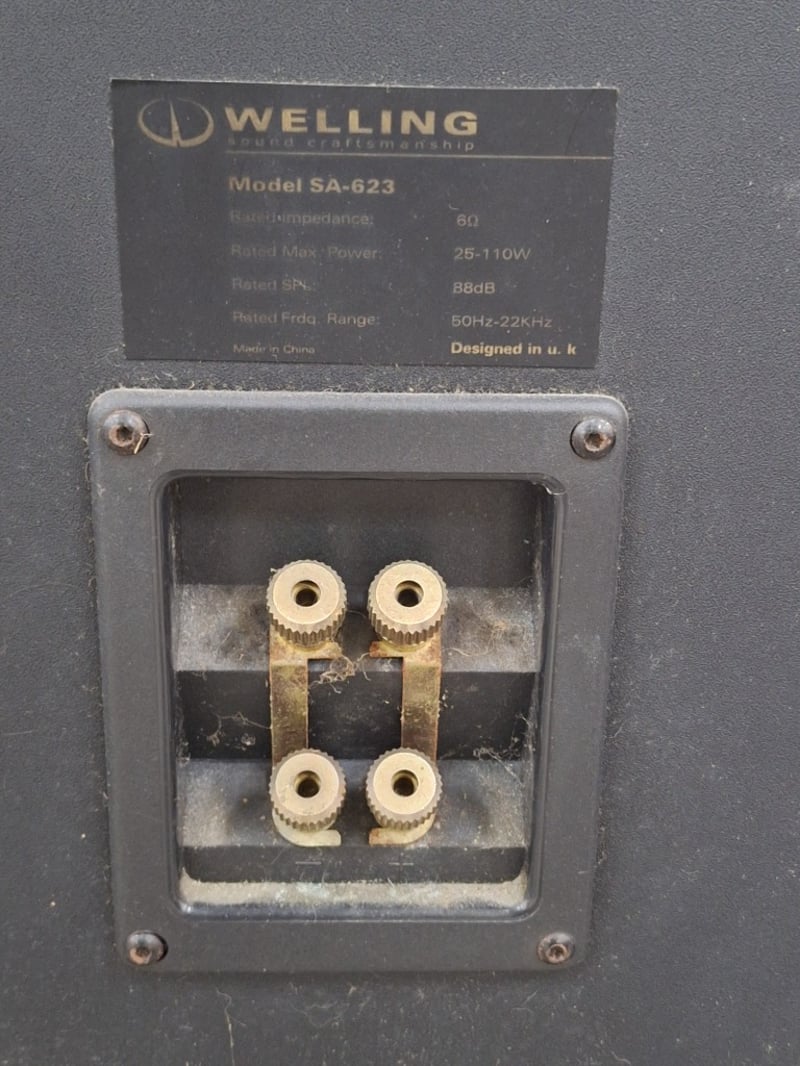 Welling SA-623 Speaker x2 - UNTESTED, Timber Style, Brown & Black FinishDimensions H:97cm W:25cm D:29cm