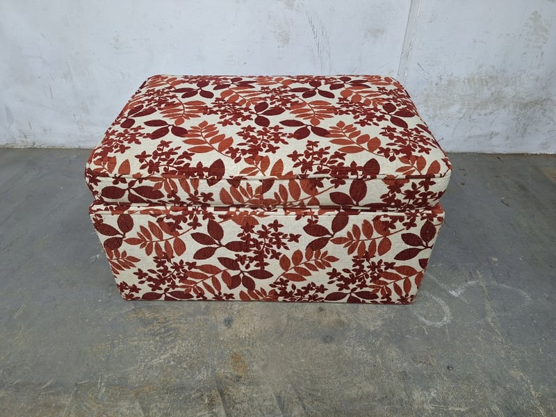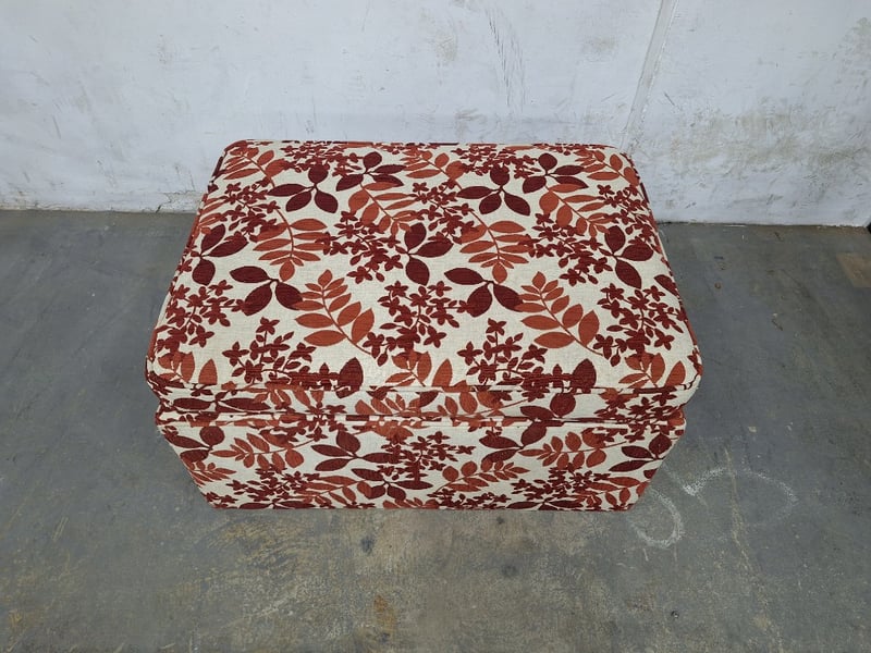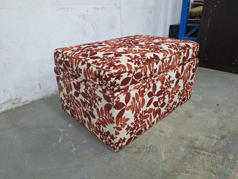 Ottoman With Leaf Pattern, Red & Cream Finish