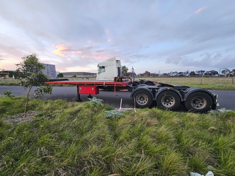 2005 Barker Heavy Duty Tri- Axle Semi A Flatbed Trailer