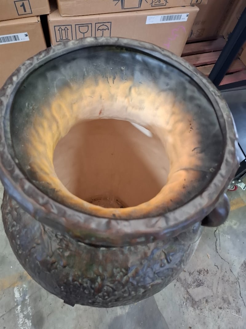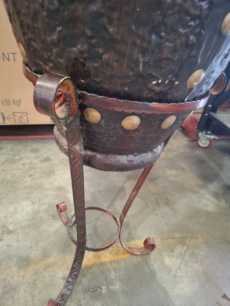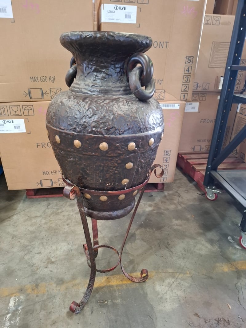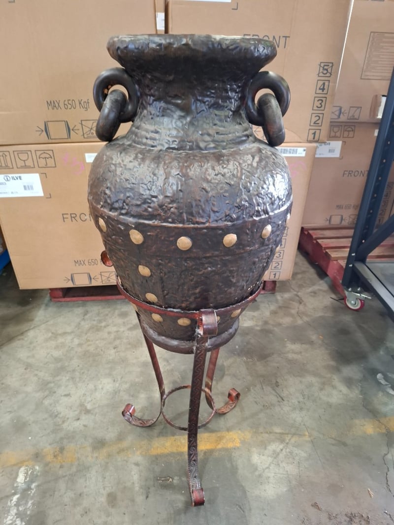 Decorative ceramic vessel with three legs metal base ,112 cm H