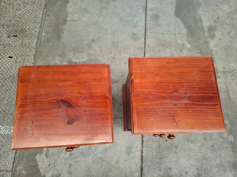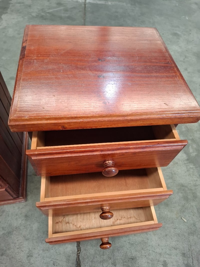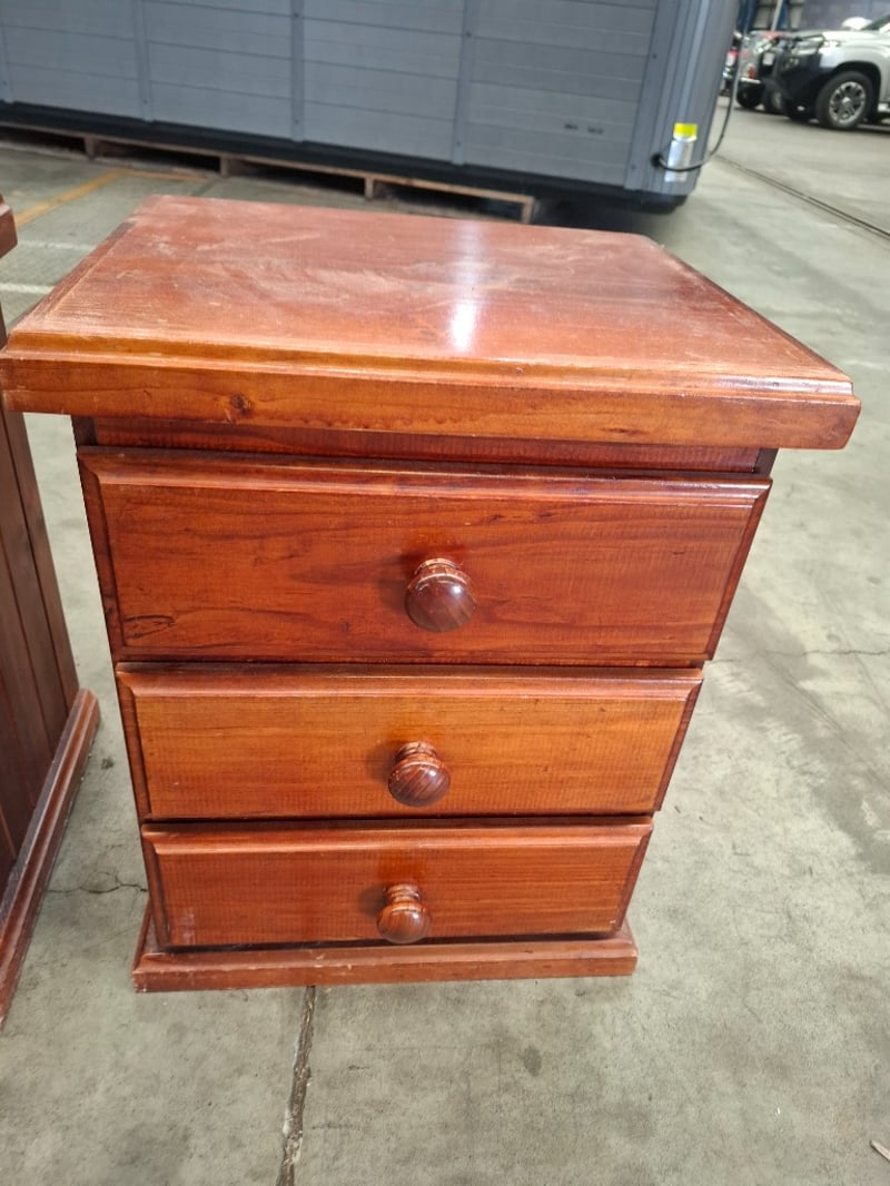 2 x Bedside table, 3 drawers Dimensions: 47 cm (W)x 40 cm (D) x 59 cm (H)NOTE: SCRATCHES ON TOP
