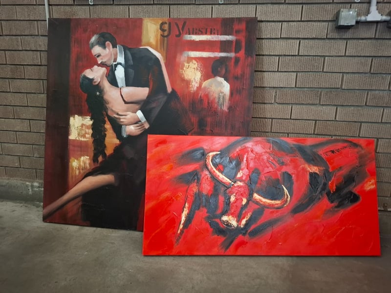 Arts work, oils canvas 120-60 cm x 120 cm SOLD AS LOT
