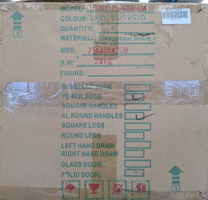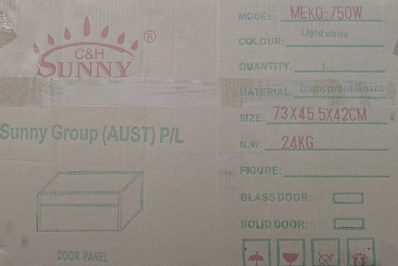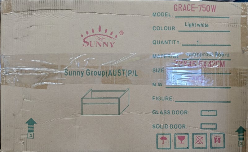 ASSORTED CABINETS. EBONY-750WB5-CM QTY 18, GRACE-750W QTY 1, MEKO-750W QTY 1. QTY 20 BOXES. SOLD AS LOT.