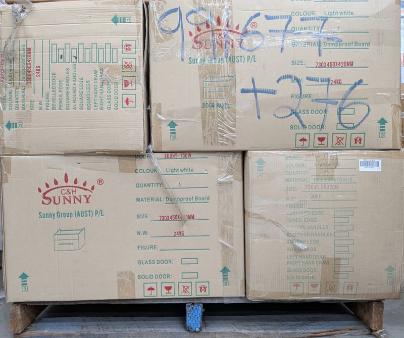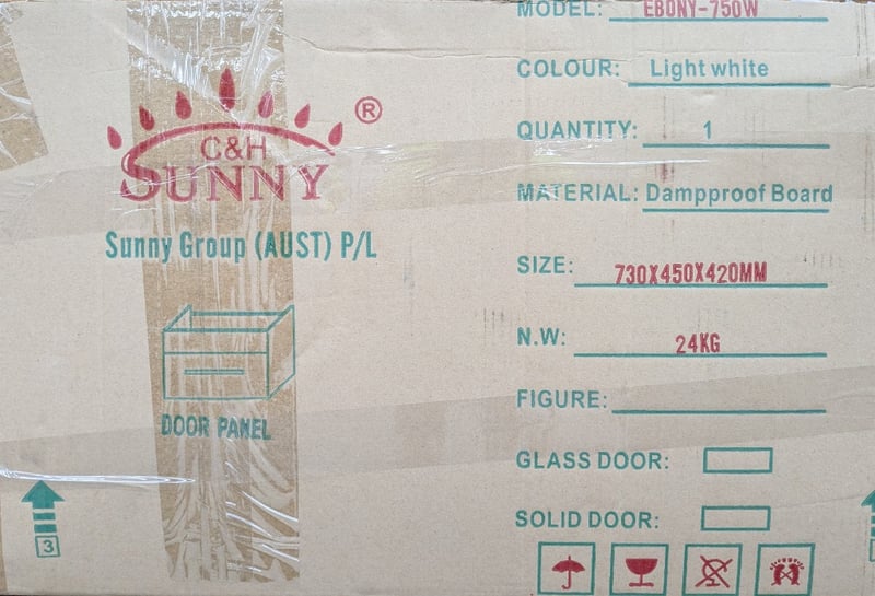 RRP$5,523, ASSORTED CABINETS. GRACE-750 QTY 1, EBONY-750W QTY 7. QTY 8 BOXES. SOLD AS LOT.