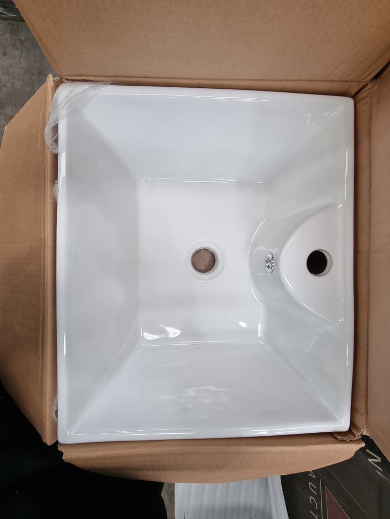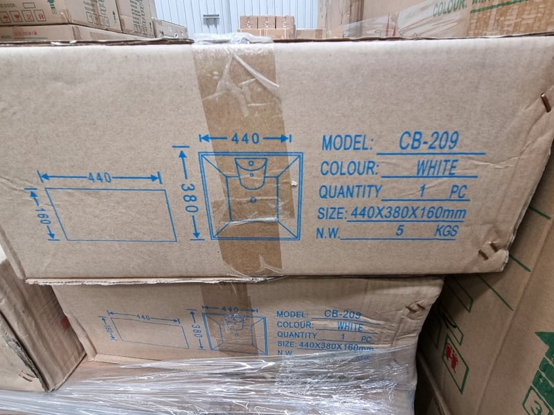 CB-209, Ceramic Wash BasinQty: 56 Boxs Dimensions: 44x38x16cmSold as pallet Lot
