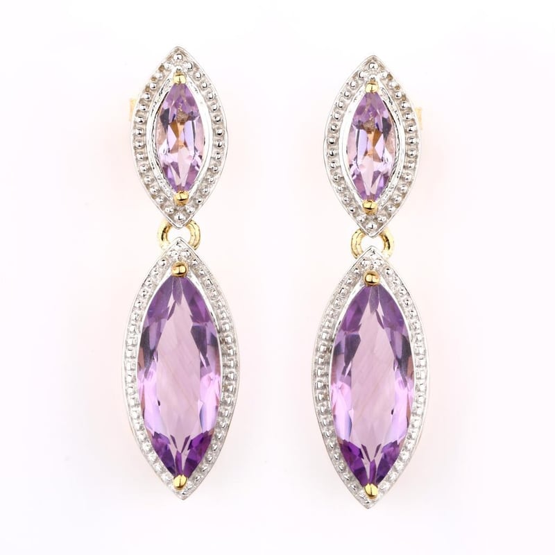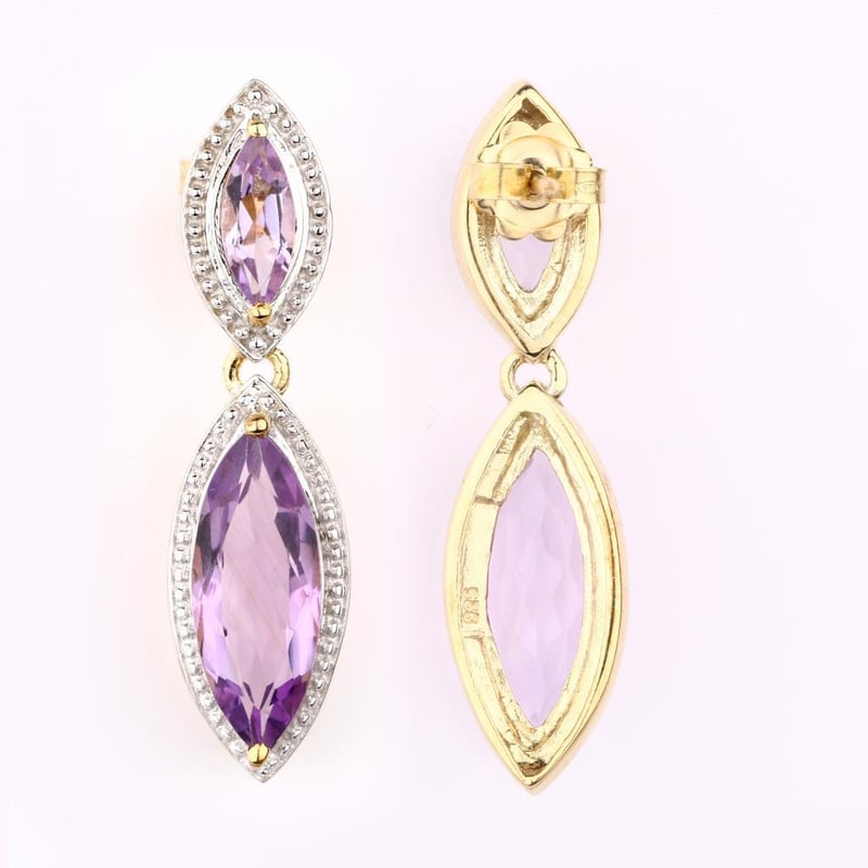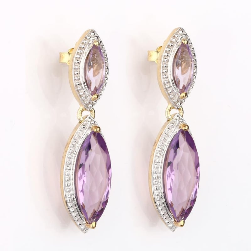 Luminous Elegance: Pink Amethyst Marquise EarringsStep into a realm of refined glamour with these exquisite Pink Amethyst Marquise Earrings, a breathtaking duo that captures the essence of elegance. Crafted with meticulous attention to detail, this stunning pair showcases two opulent marquise-cut pink amethysts, measuring 18x7mm and 10x4mm, radiating a soft yet vibrant hue that dances with every flicker of light.Set in lustrous white pen rhodium, these earrings boast a modern sophistication that perfectly complements the enchanting stones. The cool, silvery sheen enhances the natural beauty of the pink amethyst, creating a harmonious balance that exudes both grace and style. Whether paired with a chic evening gown or an elegant day ensemble, these earrings are designed to elevate any look—from the boardroom to the ballroom.Each piece is a testament to the timeless allure of fine jewelry, inviting you to indulge in the luxurious embrace of pink amethyst. Adorn yourself with these captivating earrings and let them whisper tales of beauty and sophistication with every wear. Unveil your inner radiance and seize the chance to own a piece that transcends trends, making it a cherished addition to your jewelry collection.
