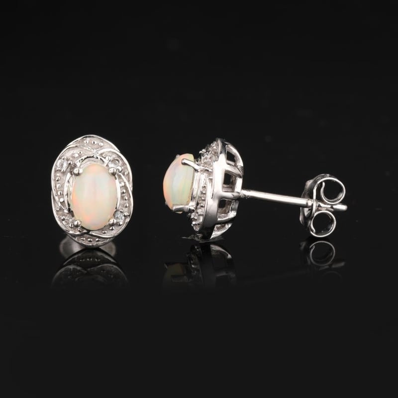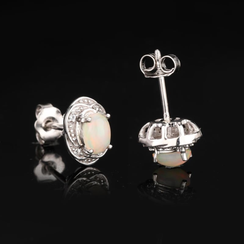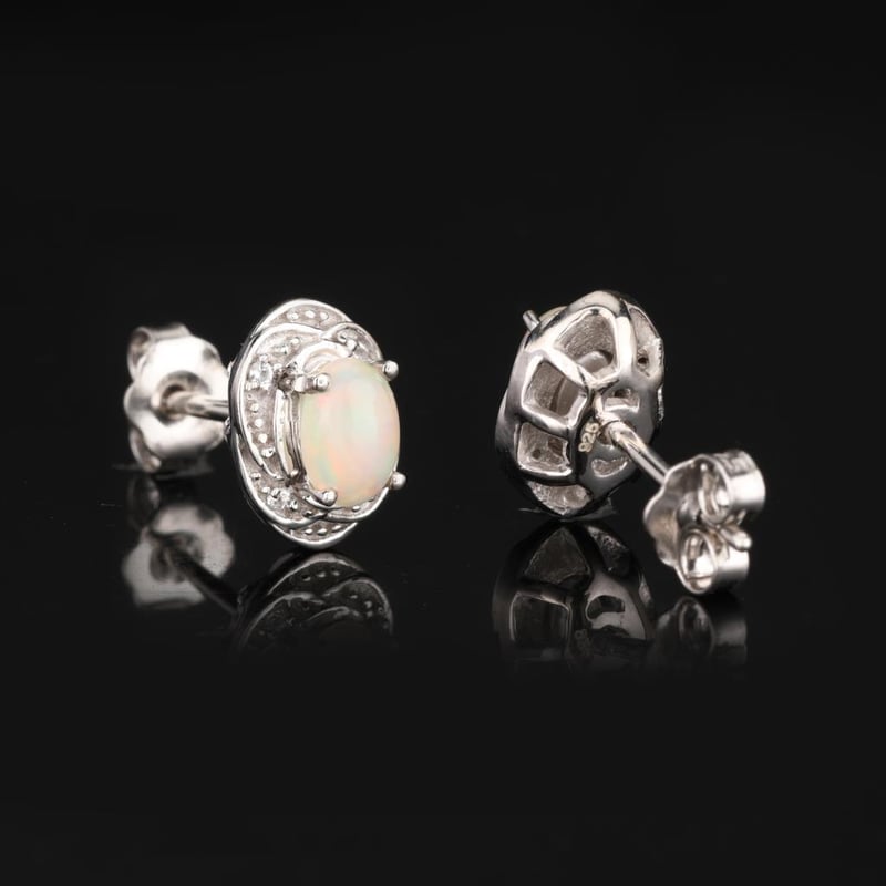 Ethereal Elegance: Ethiopian Opal and White Topaz EarringsIndulge in the opulent allure of these exquisite earrings, a harmonious blend of nature's artistry and refined craftsmanship. At the heart of this captivating piece are two stunning Ethiopian opals, each beautifully cut into an elegant oval shape measuring 6x4mm. Their mesmerizing play-of-color dances with every movement, revealing a spectrum of fiery reds, vibrant greens, and oceanic blues that evoke the enchanting landscapes of their origin. Surrounding these luminous opals are eight sparkling round white topaz stones, each meticulously set at 1.00mm, adding a touch of brilliance and sophistication. The radiant white topaz enhances the opals’ vivid hues, creating an eye-catching contrast that is both striking and ethereal. Crafted with precision, these earrings are designed to be soldered together, creating a seamless piece that embodies unity and elegance. Perfect for both day and evening wear, they are a statement of grace and individuality, destined to elevate any ensemble. Embrace the beauty of the extraordinary with these Ethiopian Opal and White Topaz earrings, and let your style shine as brightly as the gemstones themselves.