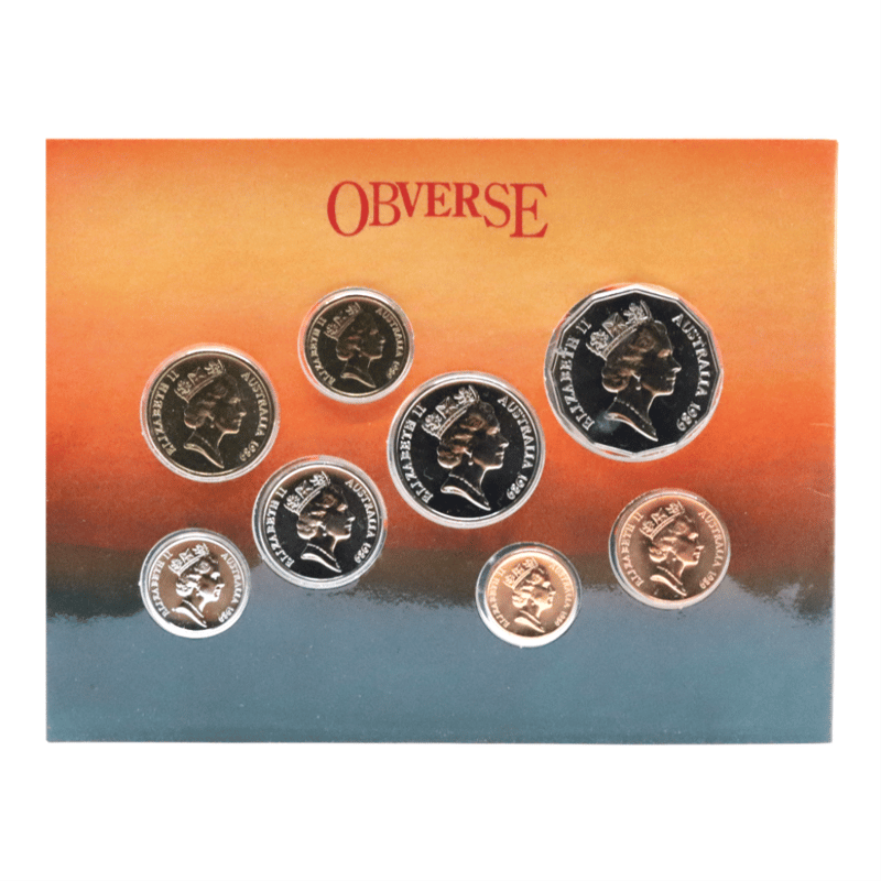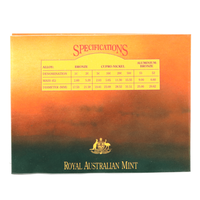 1989 UNCIRCULATED ROYAL AUSTRALIAN MINT COIN SET. 1X FIFTY CENTS1X TWENTY CENTS1X $2 COIN1X $1 COIN1X FIVE CENTS1X 1 CENT1X 2 CENTS Condition: PRE-OWNED645934+9404