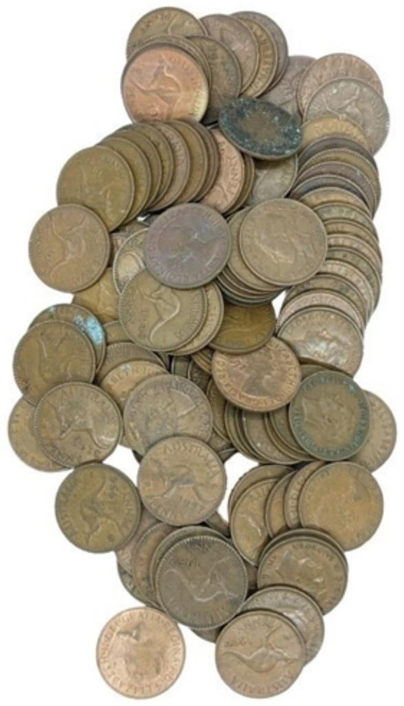 ONE KILO OF AUSTRALIA KGV/KING GEORGE VI/QUEEN ELIZABETH MIX DATE & CONDITION BULK PENNIES & HALF PENNIES MIXED CONDITION 311123+1