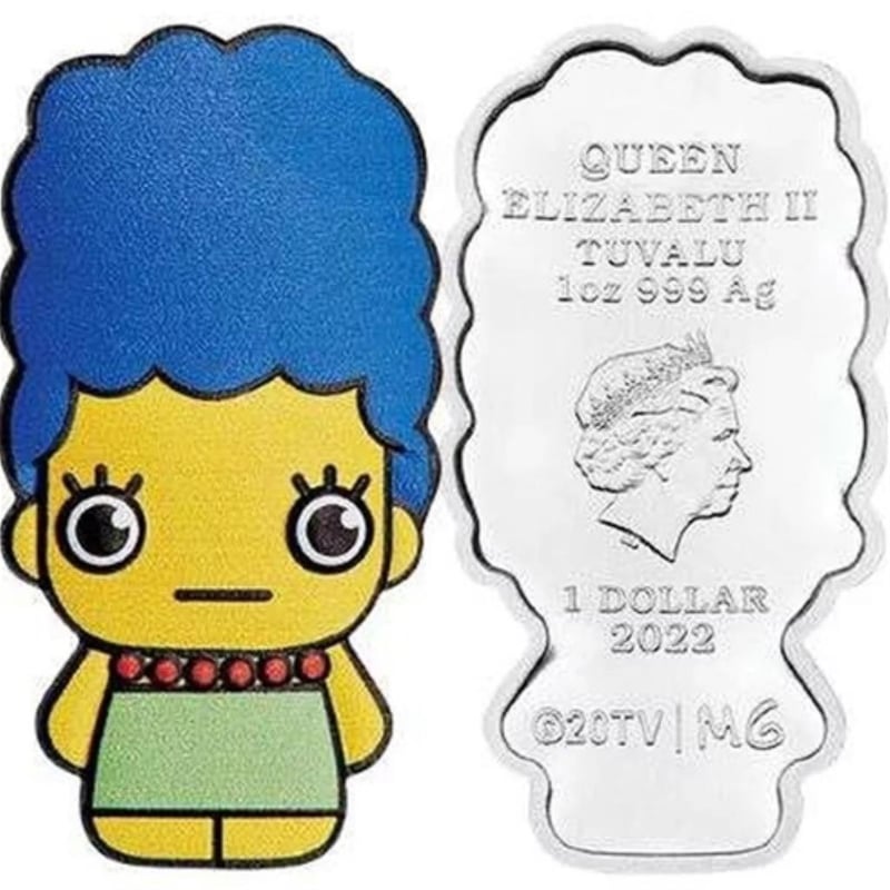 MARGE SIMPSON 2022 1OZ SILVER MINTED MINI COINTHE SIMPSONS PREMIERED AS A HALF HOUR SERIES IN 1989 AND INSTANTLY BECAME A WORLDWIDE POP-CULTURE PHENOMENON, NOW SEEN ACROSS 200 COUNTRIES IN 27 LANGUAGES. IN 2018, THE SIMPSONS REACHED AN INCREDIBLE MILESTONE BECOMING THE LONGEST-RUNNING PRIMETIME SCRIPTED SHOW IN TELEVISION HISTORY.STRUCK BY THE PERTH MINT FROM 1OZ OF 99.9% PURE SILVER, THE COIN IS ISSUED AS LEGAL TENDER UNDER THE AUTHORITY OF THE GOVERNMENT OF TUVALU.THE PERTH MINT WILL RELEASE NO MORE THAN 2,500 OF THE MARGE SIMPSON 2022 1OZ SILVER MINTED MINI COIN.DESIGNTHE REVERSE OF THE CHARACTER-SHAPED COIN PORTRAYS A STYLISED REPRESENTATION OF MARGE SIMPSON IN COLOUR.THE IAN RANK-BROADLEY EFFIGY OF HER MAJESTY QUEEN ELIZABETH II, THE 2022 YEAR-DATE, THE COIN’S WEIGHT AND FINENESS AND THE MONETARY DENOMINATION ARE DEPICTED ON THE OBVERSE.PRESENTATIONEACH COIN IS PRESENTED IN A CLEAR ACRYLIC CASE, ALLOWING BOTH SIDES OF THE COIN TO BE DISPLAYED, AND IS PACKAGED WITHIN A THEMED SHIPPER. THE COIN IS ACCOMPANIED BY A NUMBERED CERTIFICATE OF AUTHENTICITY. Marge Simpson 2022 1Oz Silver Minted Mini Cointhe Simpsons Premiered As A Half Hour Series In 1989 And Instantly Became A Worldwide Pop-Culture Phenomenon, Now Seen Across 200 Countries In 27 Languages. In 2018, The Simpsons Reached An Incredible Milestone Becoming The Longest-Running Primetime Scripted Show In Television History.Struck By The Perth Mint From 1Oz Of 99.9% Pure Silver, The Coin Is Issued As Legal Tender Under The Authority Of The Government Of Tuvalu.The Perth Mint Will Release No More Than 2,500 Of The Marge Simpson 2022 1Oz Silver Minted Mini Coin.Designthe Reverse Of The Character-Shaped Coin Portrays A Stylised Representation Of Marge Simpson In Colour.The Ian Rank-Broadley Effigy Of Her Majesty Queen Elizabeth Ii, The 2022 Year-Date, The Coin’S Weight And Fineness And The Monetary Denomination Are Depicted On The Obverse.Presentationeach Coin Is Presented In A Clear Acrylic Case, Allowing Both Sides Of The Coin To Be Displayed, And Is Packaged Within A Themed Shipper. The Coin Is Accompanied By A Numbered Certificate Of Authenticity. +79