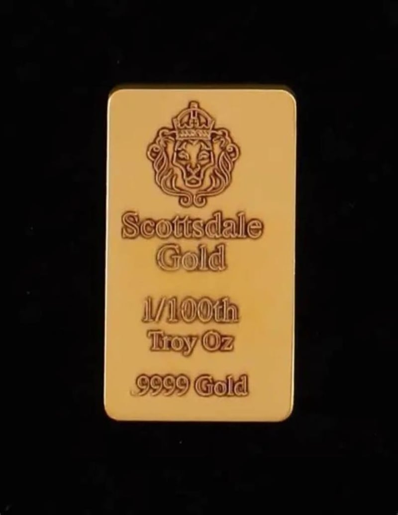 SCOTTSDALE LION 1/100OZ 9999 GOLD BULLION BAR Scottsdale Lion 1/100Oz 9999 Gold Bullion Bar +86
