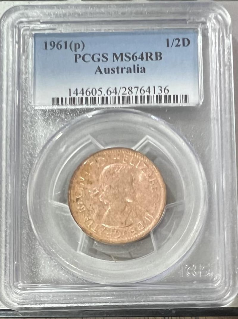 1961 PCGS GRADED 1/2 PRE DECIMAL HALF PENNY MS 64 RB 1961 Pcgs Graded 1/2 Pre Decimal Half Penny Ms 64 Rb +84
