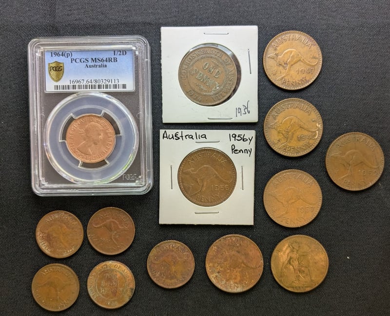 COLLECTION OF AUSTRALIA PENNY AND HALF PENNIESYears Include 1942, 1938, 1961, 1956, Etc.Condition Ranges From Good To Fine584997+13