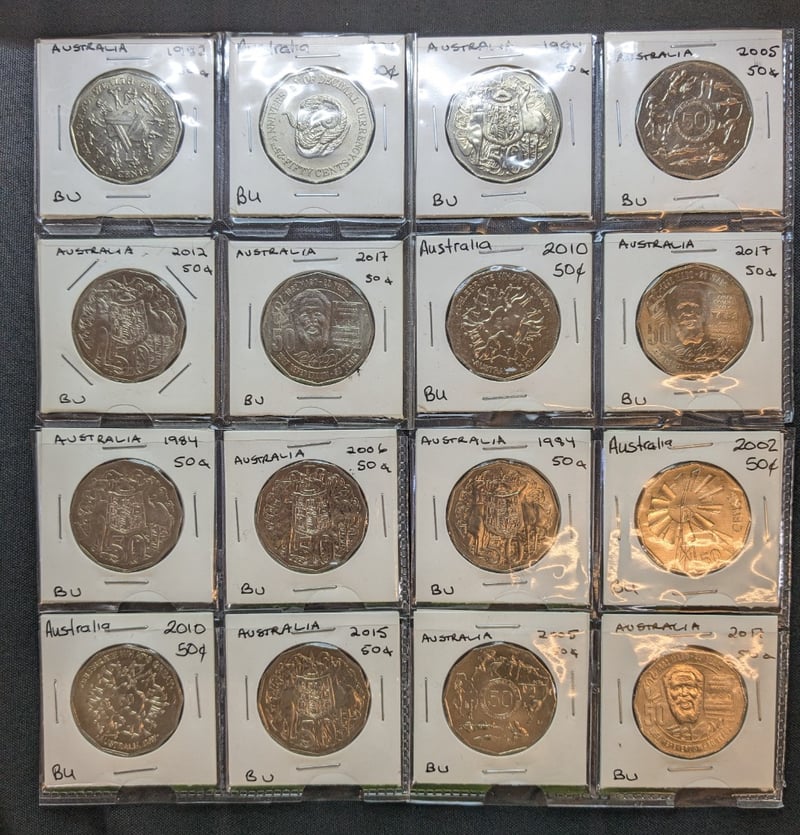 COLLECTION OF FIFTY CENT AUSTRALIAN COINSYears Include 1982, 1991, 2010, 2017, EtcCondition: Very Good584997+12