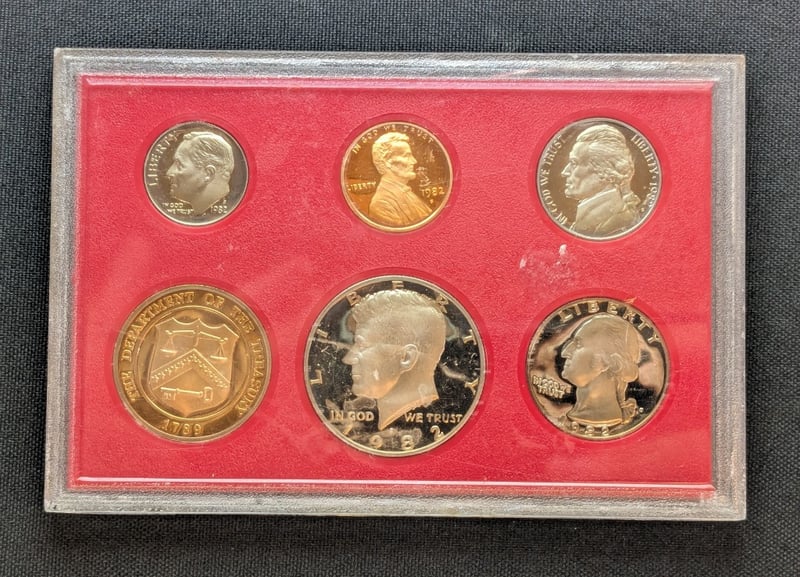 1982 UNITED STATES OF AMERICA COIN SETCoins Include One Dime, One Cent, Five Cents, EtcCondition: Aunc584997+2