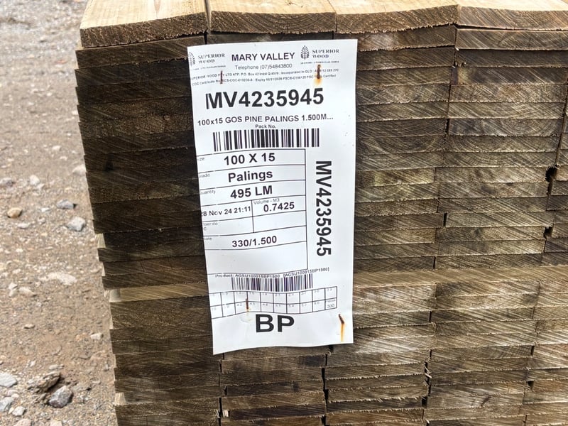 100 x 15 GOS Pine Palings, 1.5m