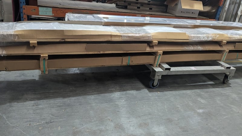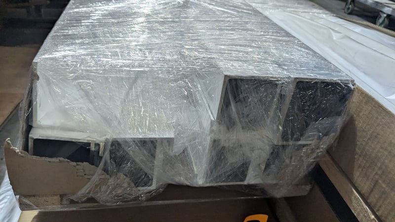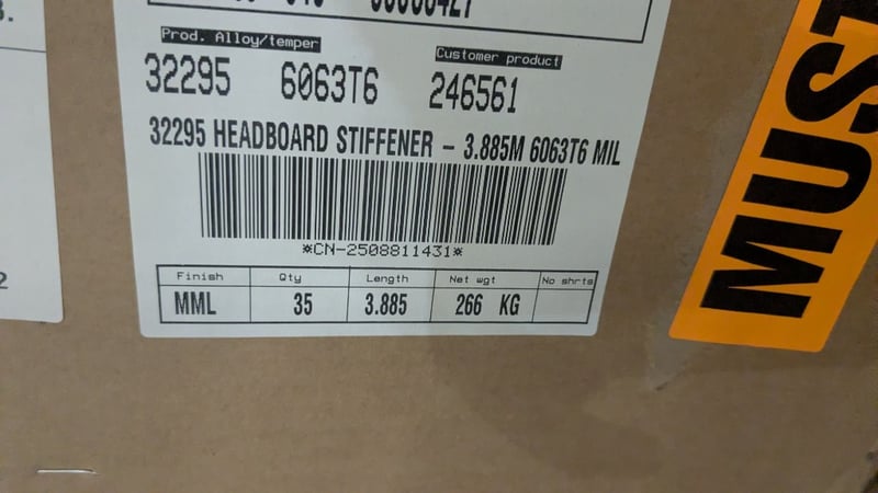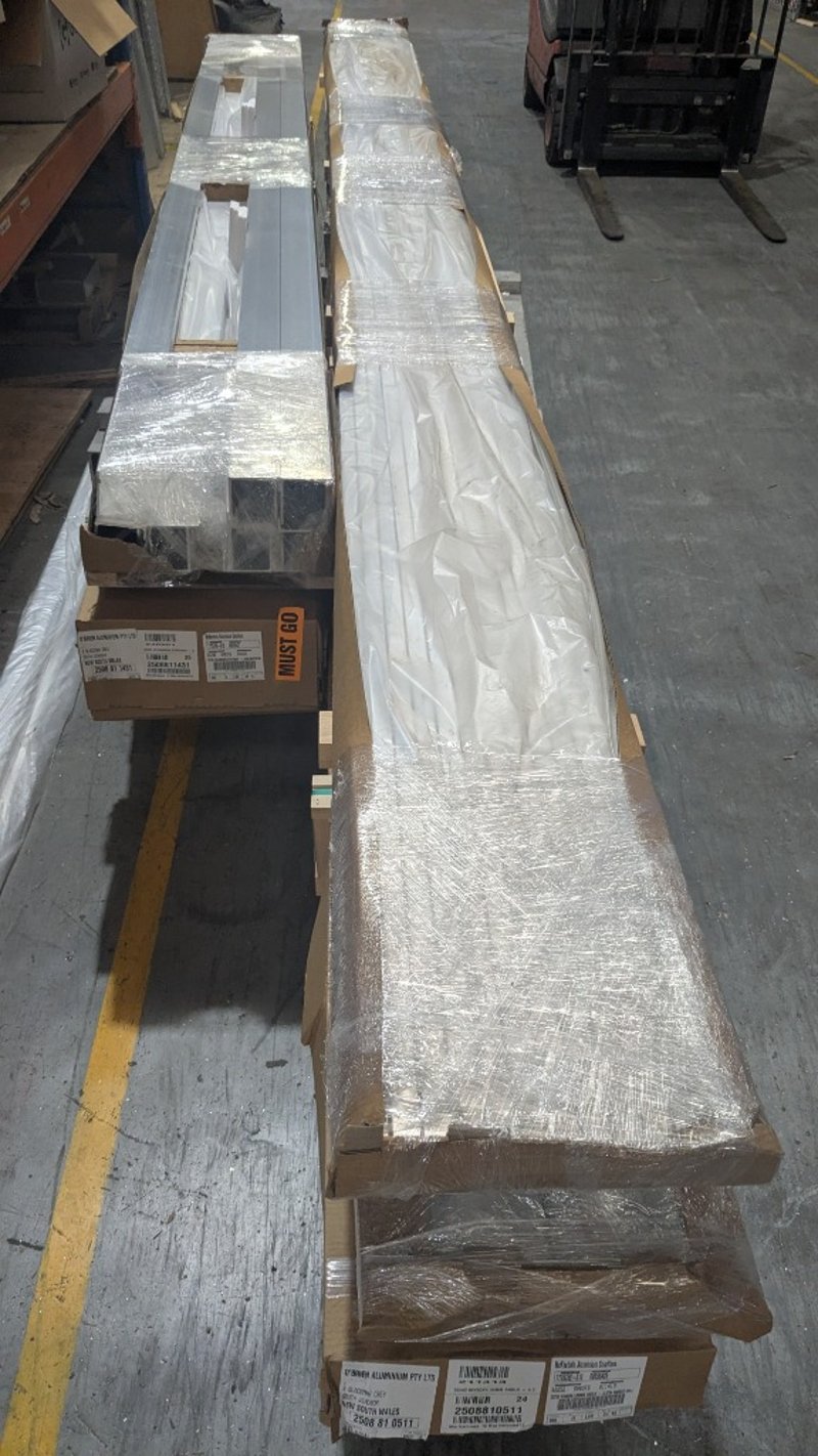 Assorted Aluminum Pieces, Mil Finish, Head Board Stiffeners, Includes Moving Dolly, Quantity to Photos Dimensions: 3900-6100mm(L) SOLD AS LOTNOTE: INSPECTIONS HIGHLY RECOMMENDED, BUYER TO PROVIDE OWN LABOUR AND TOOLS FOR SAFE REMOVAL OF ASSET