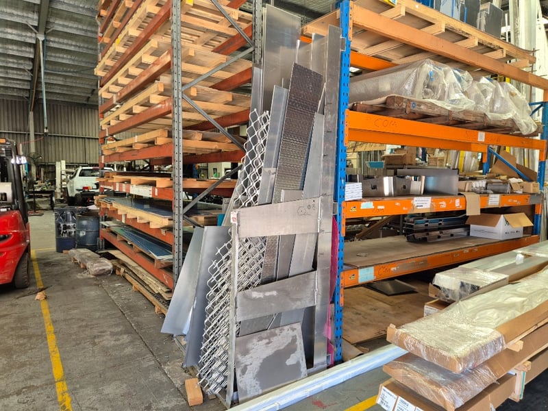 Steel Sheets, Mesh & Offcuts, w/ Metal holding storageSold as Lot MUST TAKE ALL