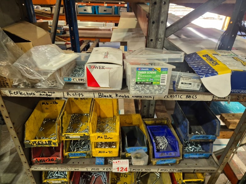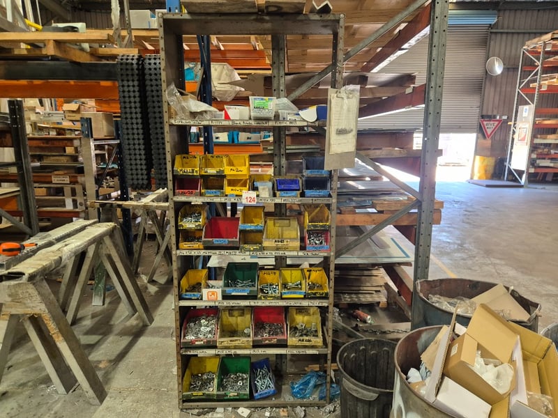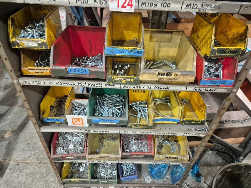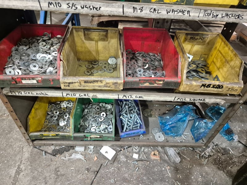 Metal Multi Tiered Shelf w/ Assorted Nuts Bolts and WashersSold as Lot MUST TAKE ALL