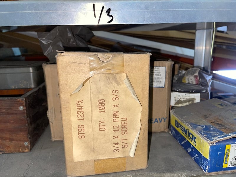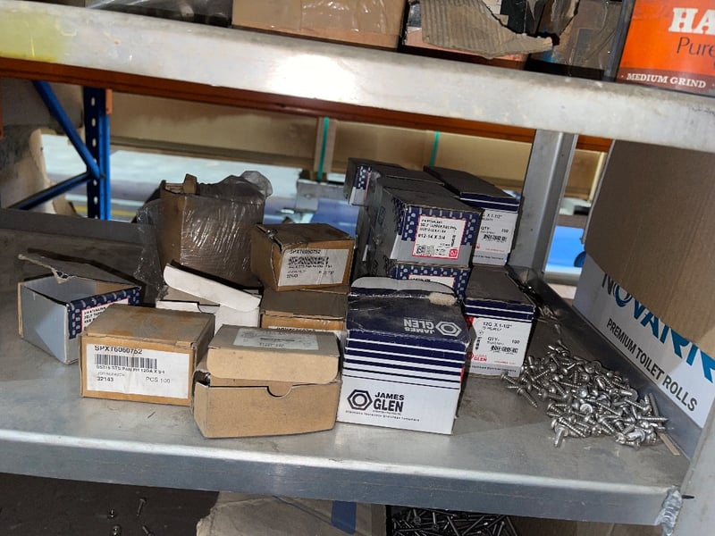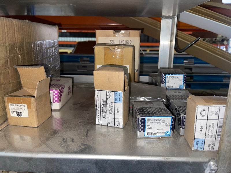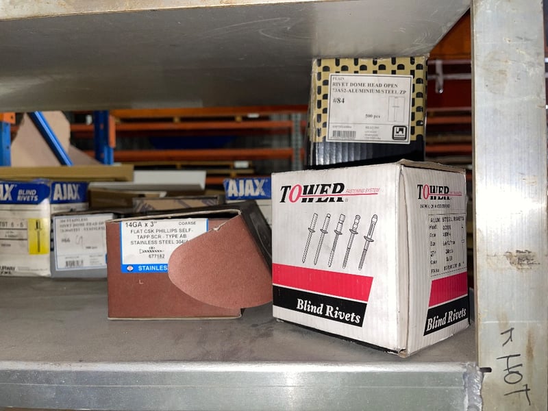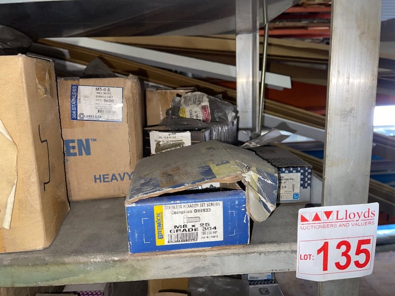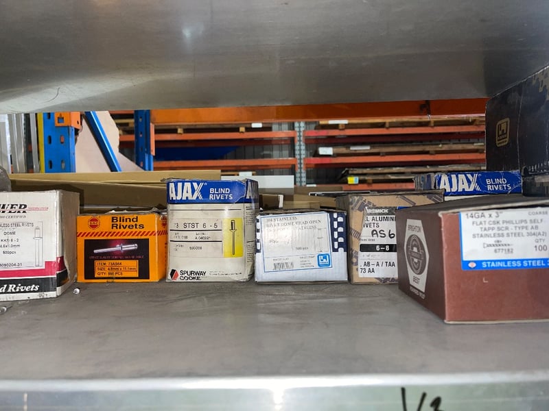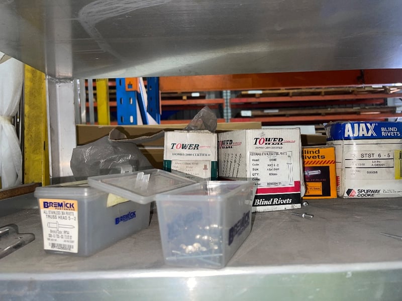 Items include stainless nut, stainless hexagon set screws, blind rivets & many more… (shelf included)