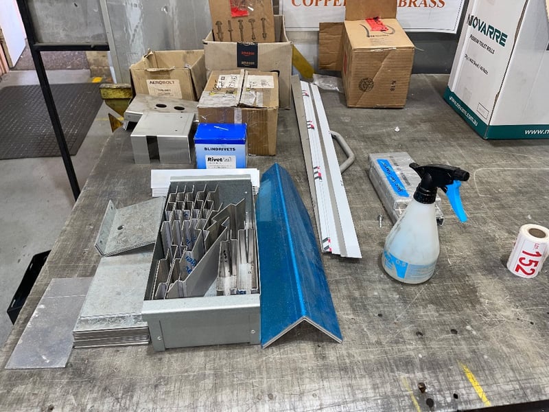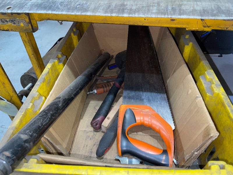 Assorted tool bundle:Includes steel brackets, saw, blue trailer straps & many more…REFER TO PHOTOS (table included) NOTE: must take all