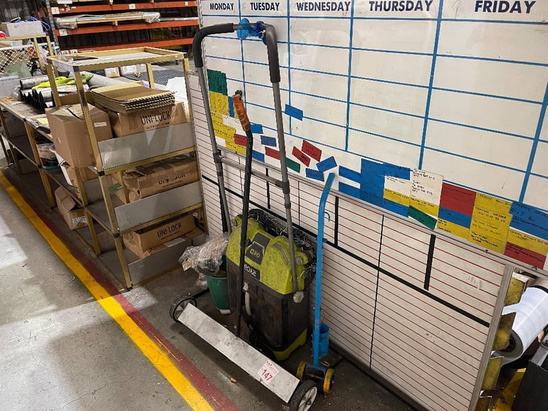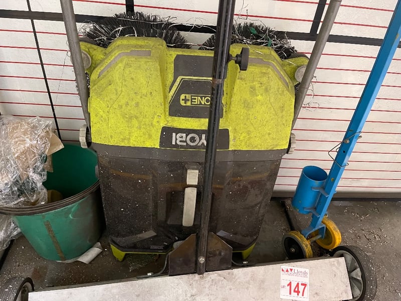 Assortment of cleaning items items include Ryobi one+ Sweeper, green bin, jumbo magnetic sweeper & more REFER TO PHOTOSnote: Must take all