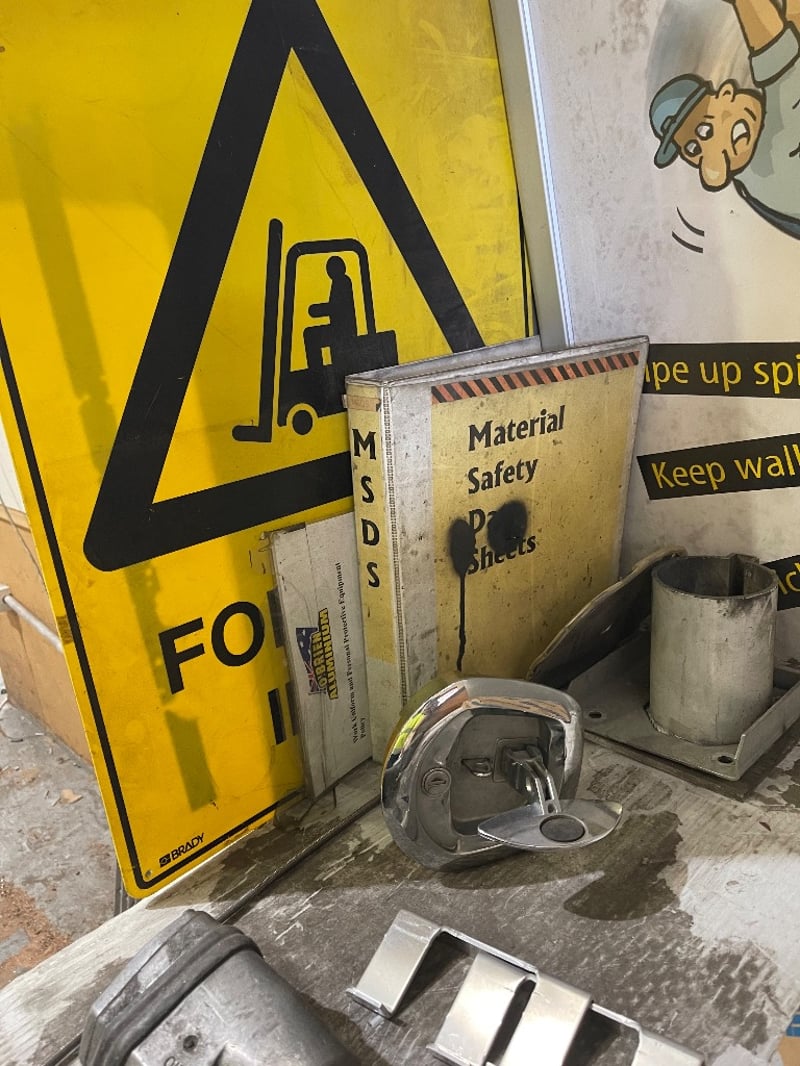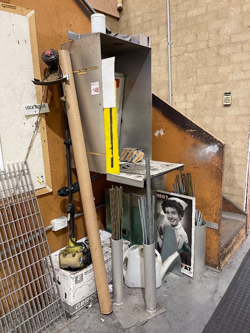 Assortment of tools & gardening Items include : screws, safety signs, metal poles & many more..REFER TO PHOTOSnote: must take all
