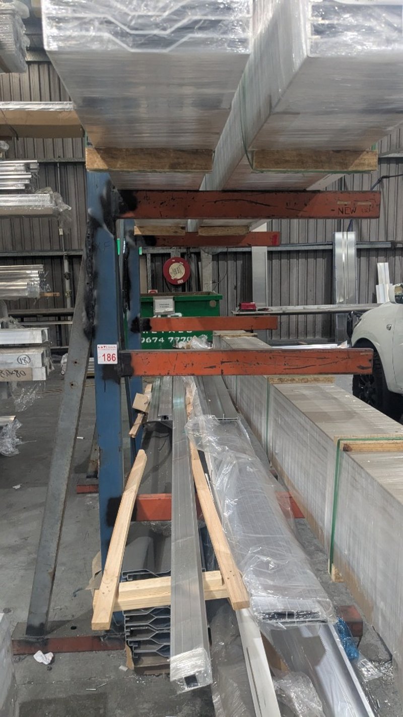 Cantilever Rack, 5 TierDimensions: 2000mm(W) x 1200mm(D) x 2500mm(H) NOTE: CONTENTS NOT INCLUDED, INSPECTIONS HIGHLY RECOMMENDED, BUYER TO PROVIDE OWN LABOUR AND TOOLS FOR SAFE REMOVAL OF ASSET