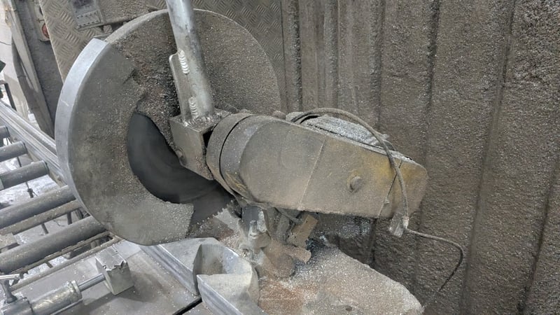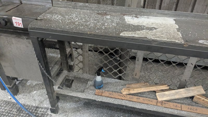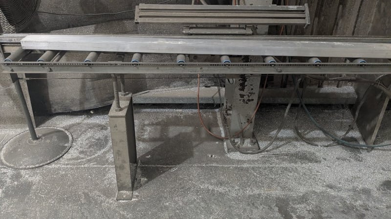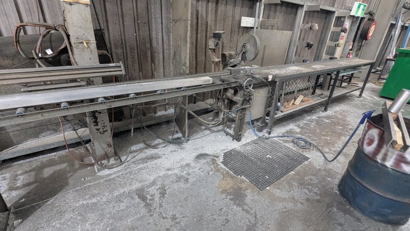 Metal Cut Off Saw, 3 Phase, 300mm Dia Blade, Includes Production Rollers, Dimensions: 7700mm(L) x 850mm(D) x 1400mm(H) SOLD AS LOT NOTE: INSPECTIONS HIGHLY RECOMMENDED, BUYER TO PROVIDE OWN LABOUR AND TOOLS FOR SAFE REMOVAL OF ASSET